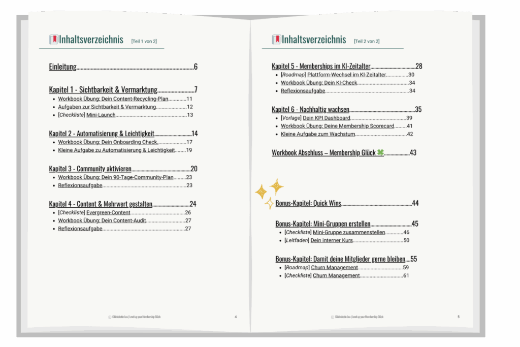 In meinem Workbook Level up your Membership Glück findest du nicht nur Strategien, wie du diese Fehler vermeidest – sondern auch Checklisten für Plattformwahl, KPIs und Mehrwert-Strategien.